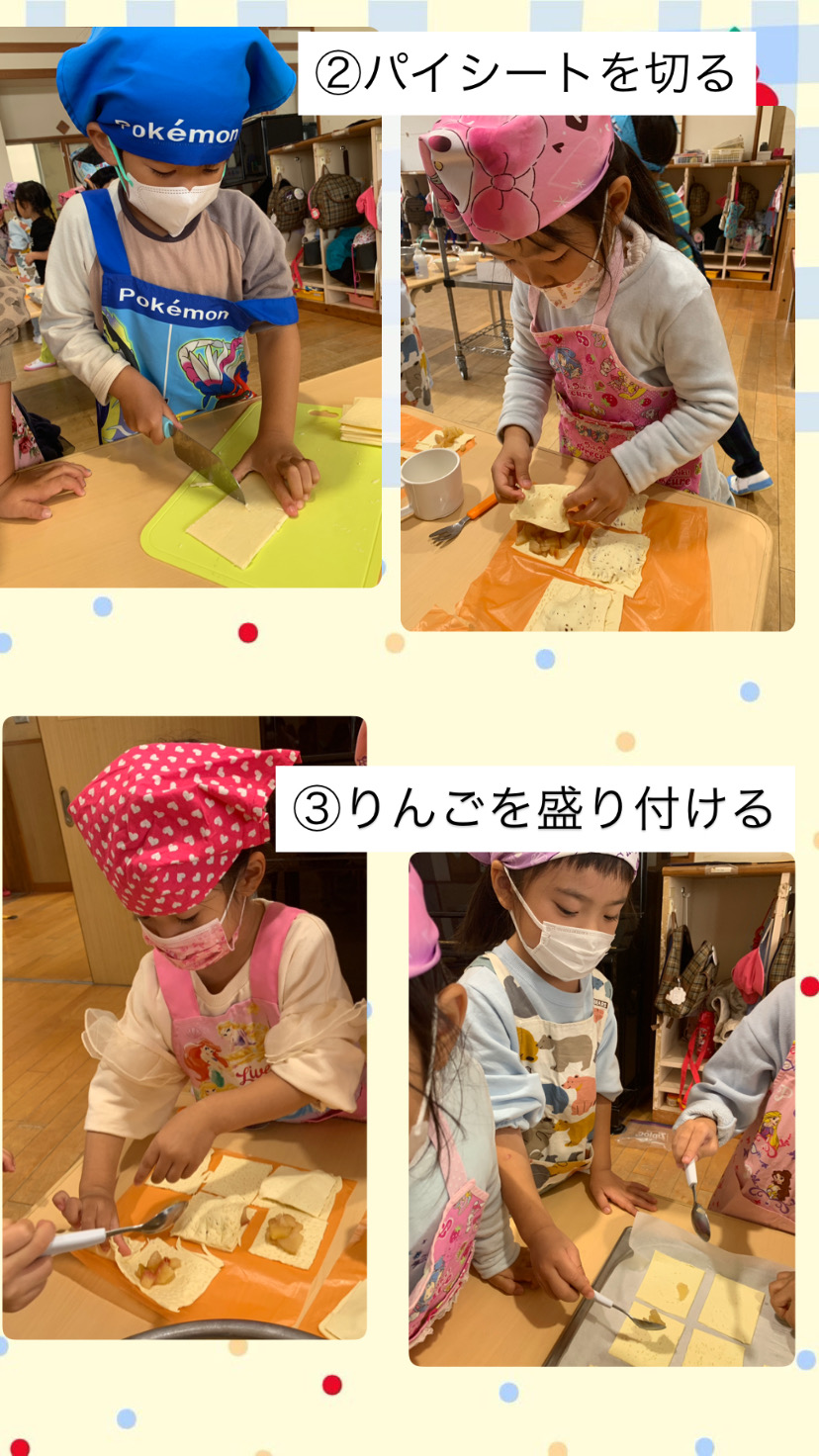 今日はきくぐみでクッキング!!アップルパイを作りました!!