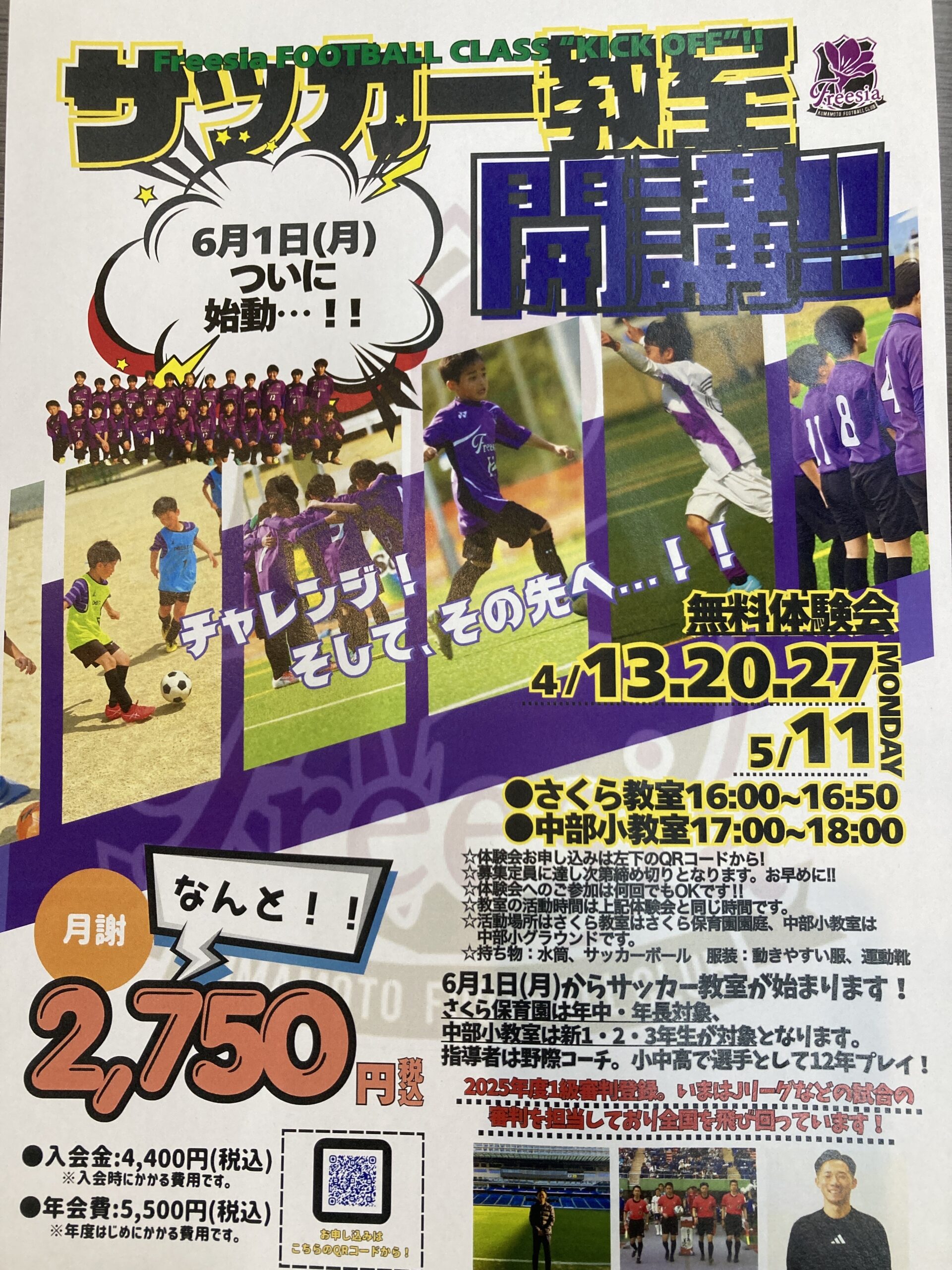 サッカー教室開講のお知らせ!