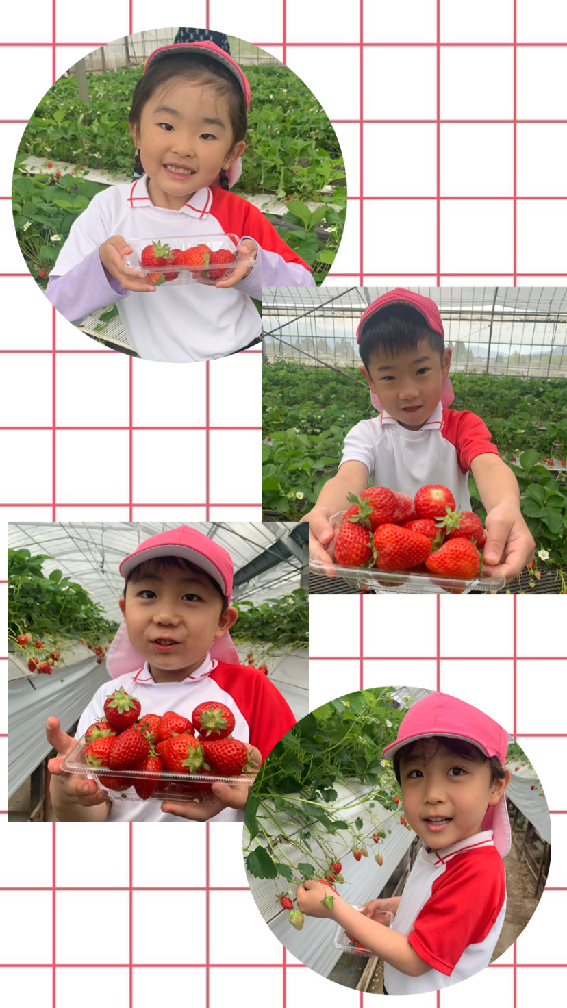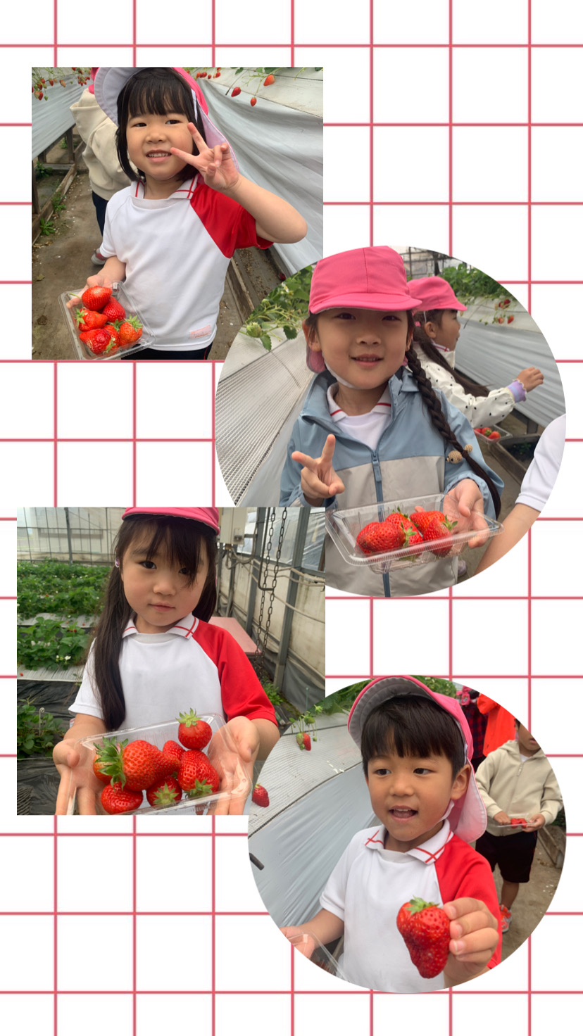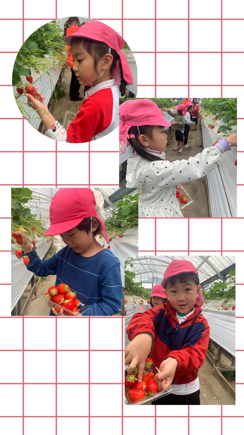 今日は年長になって初めての園外保育でいちご狩りに行ってきました!!