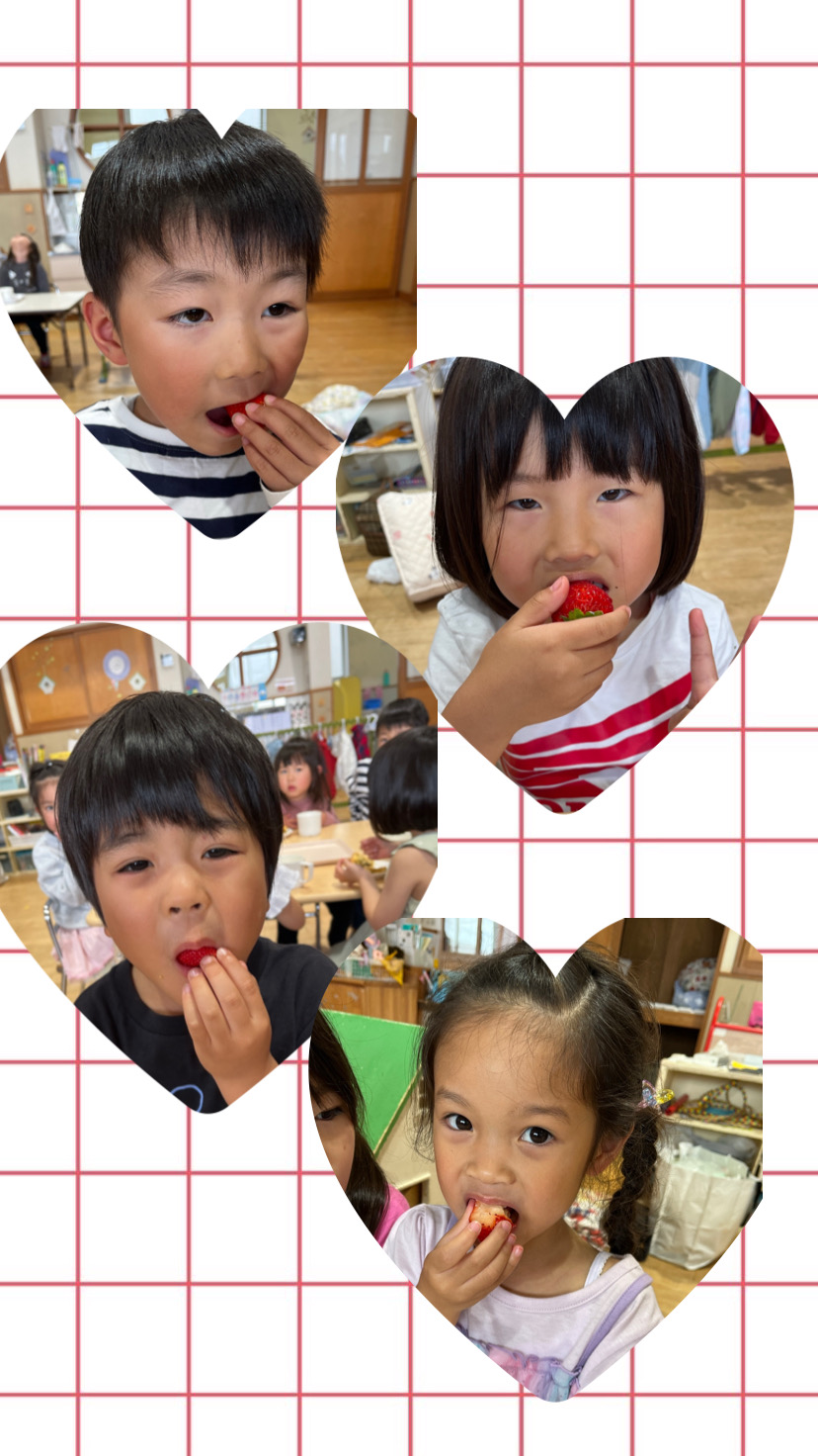 保育園に帰ってきてから自分たちで取ったイチゴをパクリ🍓😋