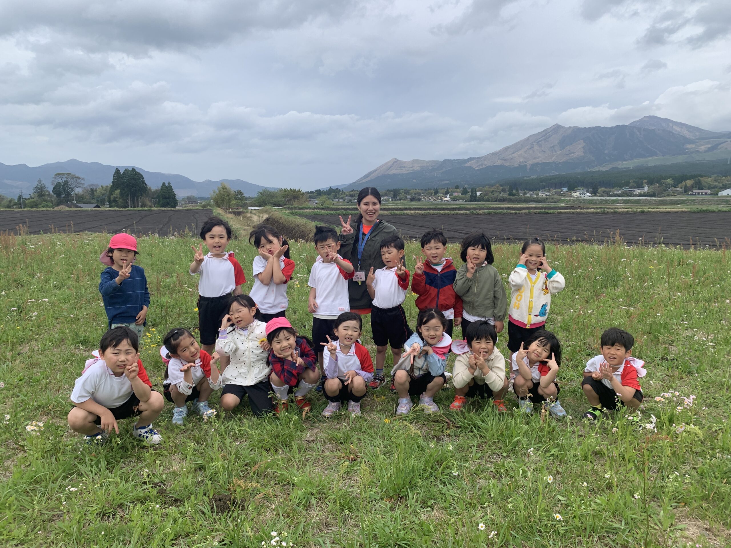 阿蘇の大きい山をバックにはいチーズ📸